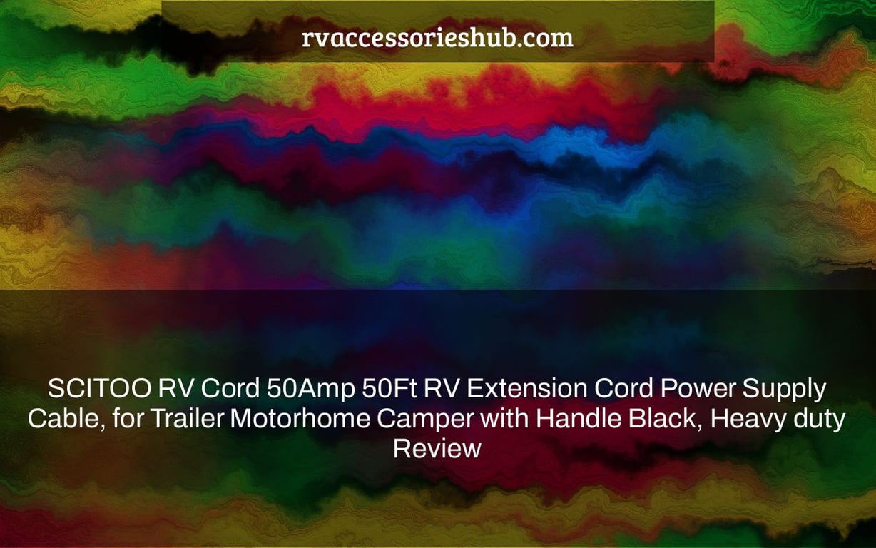 The SCITOO RV Cord 50Amp 50Ft RV Extension cord is a heavy duty, durable power cable that can handle up to 50 amps of electricity. It also has an attached carry case and a 12-foot long wire. The carrying case makes it easy to transport this product with you when camping or traveling in your vehicle.